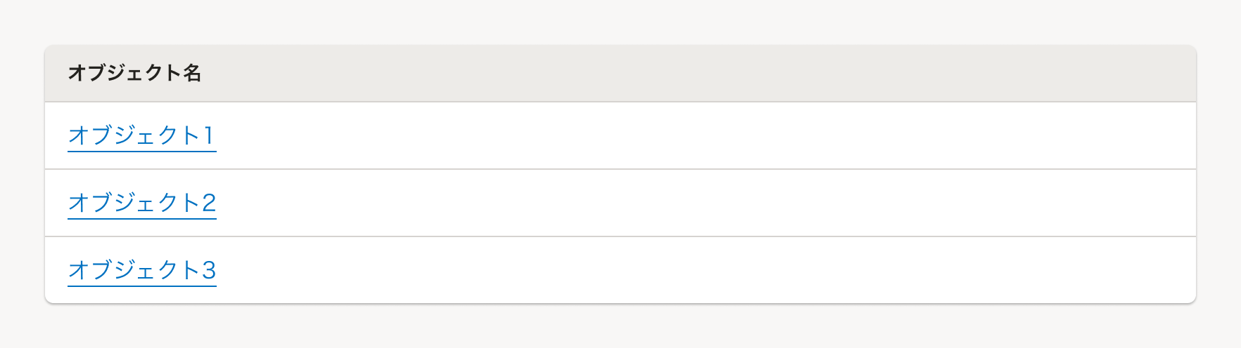 オブジェクトの数が1ページに収まる(Paginationがない)場合の表示パターンは以下のとおりです。
